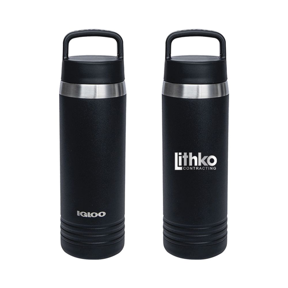 The Igloo® 24 oz. Stainless Steel Bottle is the must-have for all the outdoor lovers. The lid's integrated carry handle with soft TPR grip makes it easy and comfortable carry. Its 18/8 double wall vacuum-insulated construction keeps your drink cold for 30 hours and hot for 8 hours. It has a wide mouth opening for easy ice loading and cleaning. The powder coat finish gives the bottle a nice and clean look and is also sweat proof. FDA compliant and BPA Free.