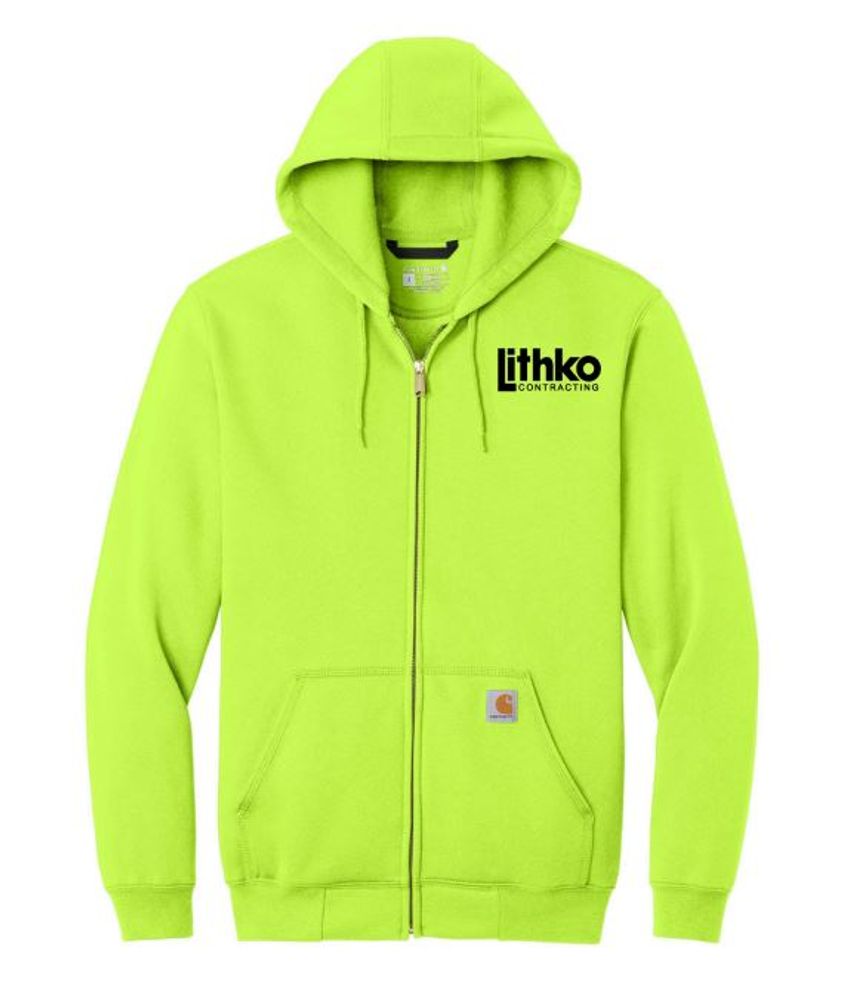 • Carhartt's Midweight Hooded Zip-Front Sweatshirt brings considerable comfort to cool-weather worksites.