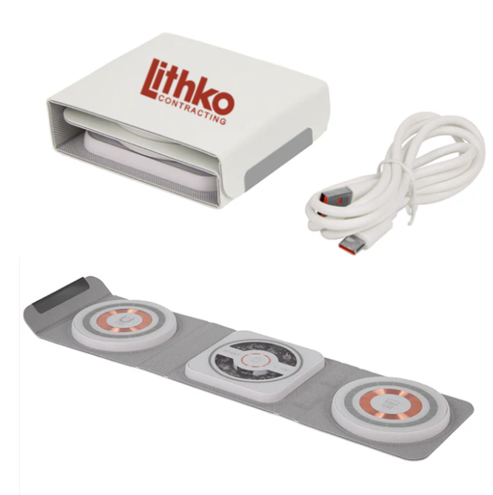 Unfold luxury and conquer clutter. The Richmond 3-in-1 Foldable Wireless Station boasts a sleek leatherette, effortless wireless charging (smart phone, smart watch, and ear buds!), and a secure magnetic closure. Power up in style and conquer your day untethered. 3 3/8" W x 3 1/8" H x 1" D